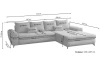 - rohový pôdorys – sedaciu súpravu je možné univerzálne zmontovať ako pravý alebo ľavý roh (s otomanom umiestneným na pravej alebo ľavej strane)