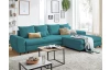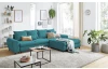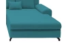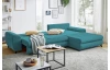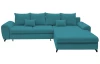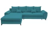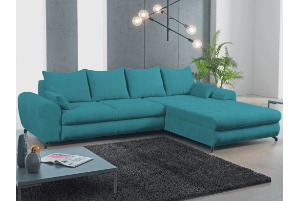 Atraktívna rohová sedacia súprava so zaoblenými tvarmi ponúka príjemne mäkký štýl sedenia pre Váš každodenný komfort. Očalúnená látkou vo farbe petrolejová. Ďalšou pridanou hodnotou je praktický úložný priestor a navyše rozkladacia funkcia – vďaka nej sa sedačka ľahko premení na príležitostné lôžko pre návštevu. Vďaka univerzálne riešenej konštrukcii je možné sedačku zostaviť ako pravý alebo ľavý roh, respektíve s otomanom na pravej alebo ľavej strane – sedačka sa tak lepšie prispôsobí priestorovým možnostiam Vašej obývačky.