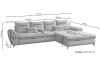 - rohový pôdorys – sedaciu súpravu je možné univerzálne zmontovať ako pravý alebo ľavý roh (s otomanom umiestneným na pravej alebo ľavej strane)