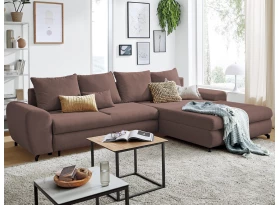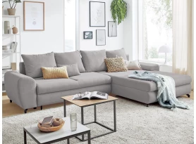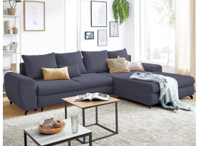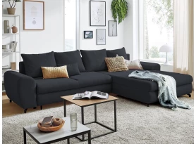 Atraktívna rohová sedacia súprava so zaoblenými tvarmi, ponúka príjemne mäkký štýl sedenia pre Váš každodenný komfort. Očalúnená látkou vo farbe tmavo šedá. Ďalšou pridanou hodnotou je praktický úložný priestor a navyše rozkladacia funkcia – vďaka nej sa sedačka ľahko premení na príležitostné lôžko napríklad na návštevu. Vďaka univerzálne riešenej konštrukcii je možné sedačku zostaviť ako pravý alebo ľavý roh, respektíve s otomanom na pravej alebo ľavej strane – sedačka sa tak lepšie prispôsobí priestorovým možnostiam Vašej obývačky.