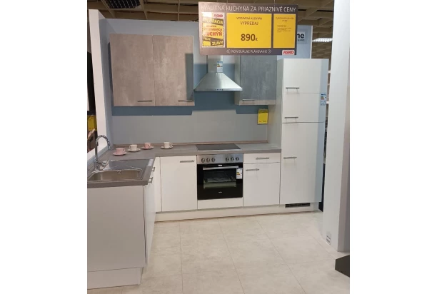Kompletná zostava kuchyne IP1200 – extra výhodný odpredaj tovaru z predajne Nitra. V prevedení biela/betón/sivá.