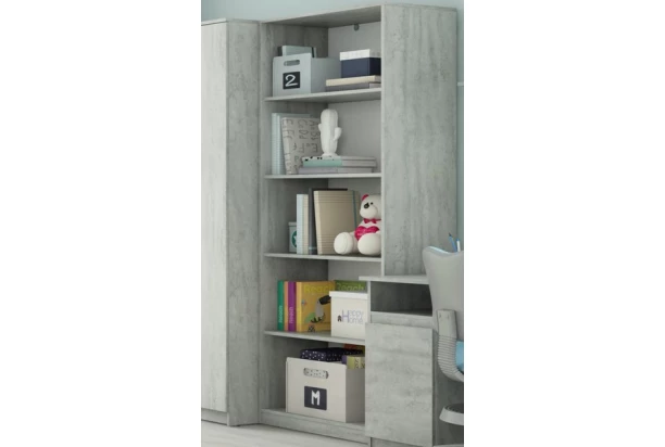 Vysoký regál Carlos, šedý betón, šírka 75 cm