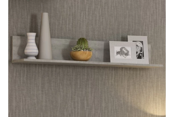 Nástenná polica Carlos so šírkou 120 cm v imitácii sivého betónu je úplne univerzálna a vhodná do akejkoľvek izby.