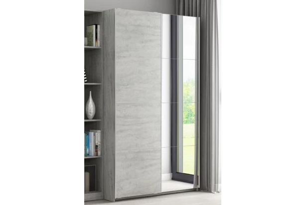 Šatníková skriňa so šírkou 125 cm s 2 posuvnými dverami v imitácii šedého betónu, ponúka praktické úložné priestory, účelnosť a čisté línie tvarov, ktoré sa hodia do každého interiéru.