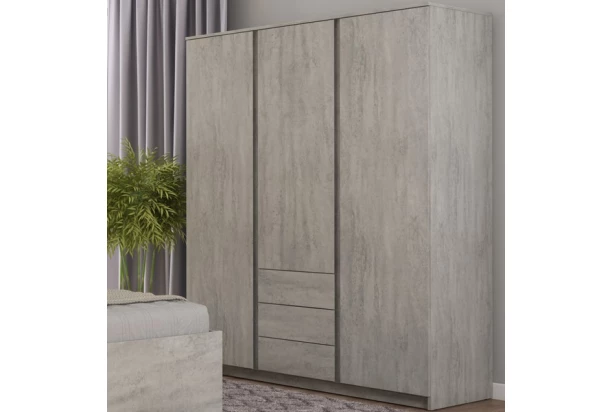 Šatníková skriňa so šírkou 152 cm v imitácii šedého betónu, ponúka praktické úložné priestory, účelnosť a čisté línie tvarov, ktoré sa hodia do každého interiéru.