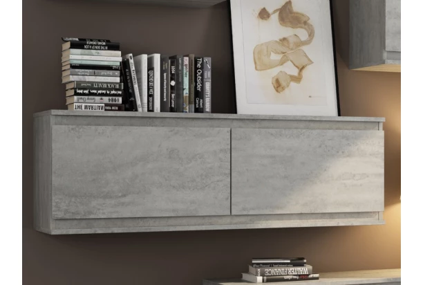 Nástenná 2-dverová skrinka so šírkou 120 cm v imitácii šedého betónu ponúka praktický úložný priestor, účelnosť a čisté línie tvarov, ktoré sa hodia do každého interiéru.