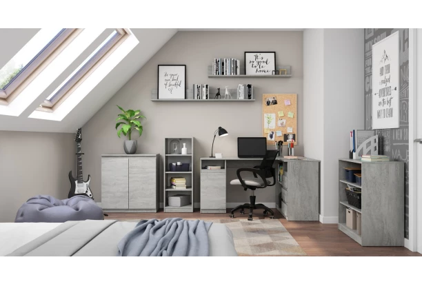 Skrinka 2-dverová so šírkou 75 cm v imitácii sivý betón ponúka praktické úložné priestory, účelnosť a čisté línie tvarov, ktoré sa hodia do každého interiéru.