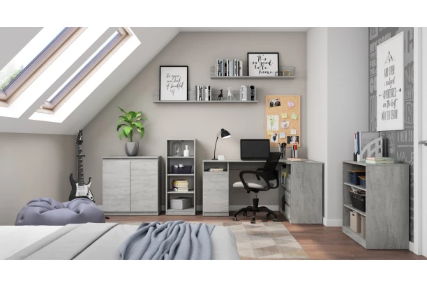 Nízky regál so šírkou 75 cm v imitácii sivý betón ponúka praktické úložné priestory, účelnosť a čisté línie tvarov, ktoré sa hodia do každého interiéru. Police je možné výškovo nastavovať.