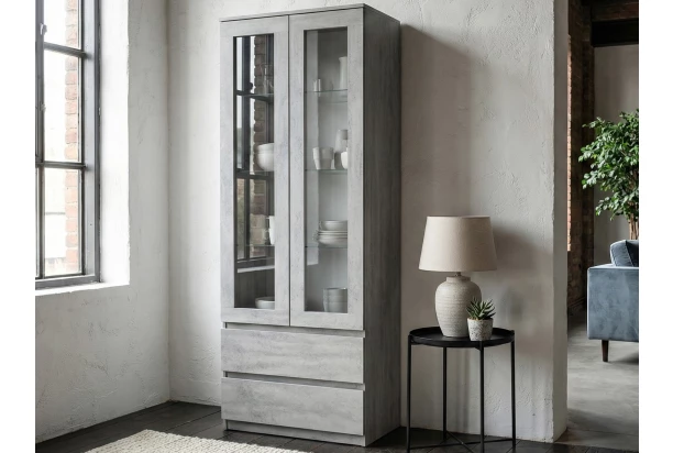 Vysoká vitrína Carlos, šedý betón, šírka 70 cm