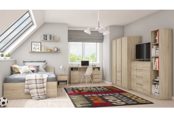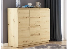 Široká komoda so šírkou 120 cm v dekore dub sonoma ponúka praktické úložné priestory, účelnosť a čisté línie tvarov, ktoré sa hodia do každého interiéru.