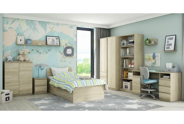 Posteľ o rozmere lôžka 90×200 cm v dekore dub sonoma ponúka praktické úložné zásuvky, účelnosť a čisté línie tvarov, ktoré sa hodia do každého interiéru.
