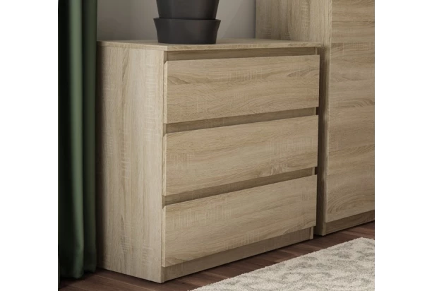 Zásuvková komoda s výškou 80 cm v dekore dub Sonoma, obsahuje 3 zásuvky a ponúka praktické úložné priestory, účelnosť a čisté línie tvarov, ktoré sa hodia do každého interiéru.