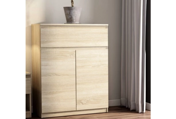 Skrinka so zásuvkou so šírkou 80 cm v dekore dub sonoma, ponúka praktické úložné priestory, účelnosť a čisté línie tvarov, ktoré sa hodia do každého interiéru.