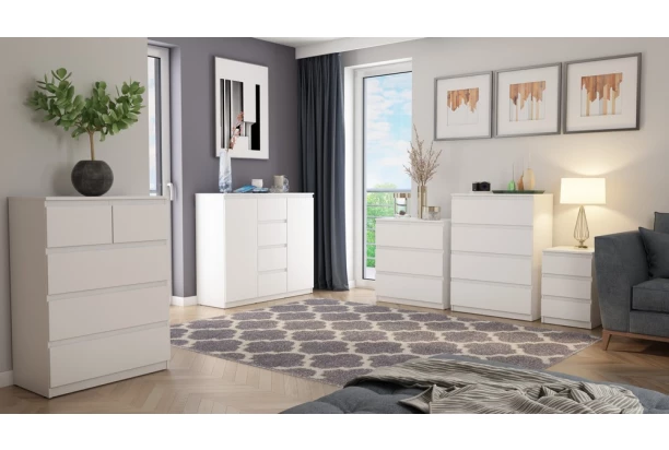 Komoda s 5 zásuvkami o šírke 75 cm v bielej farbe ponúka praktické úložné priestory, účelnosť a čisté línie tvarov, ktoré sa hodia do každého interiéru.