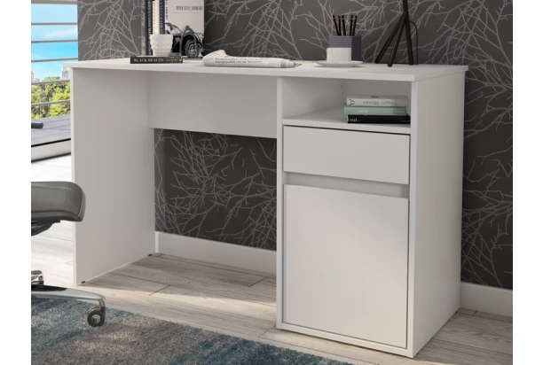 Písací stôl v bielom prevedení ponúka praktické úložné priestory, účelnosť a čisté línie tvarov, ktoré sa hodia do každého interiéru.