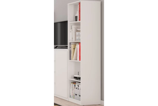 Vysoký regál o šírke 40 cm v dekore bielej farbe ponúka praktické úložné priestory, účelnosť a čisté línie tvarov, ktoré sa hodia do každého interiéru. Police možno výškovo nastavovať.