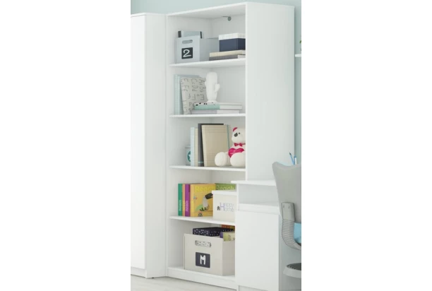 Vysoký regál so šírkou 75 cm v bielej farbe ponúka praktické úložné priestory, účelnosť a čisté línie tvarov, ktoré sa hodia do každého interiéru. Police možno výškovo nastavovať.