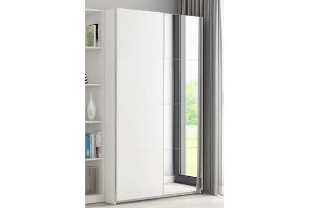 Šatníková skriňa so šírkou 150 cm s 2 posuvnými dverami v bielej farbe, ponúka praktické úložné priestory, účelnosť a čisté línie tvarov, ktoré sa hodia do každého interiéru.