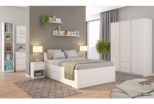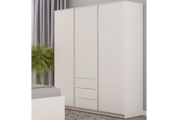 Šatníková skriňa so šírkou 152 cm v bielej farbe, ponúka praktické úložné priestory, účelnosť a čisté línie tvarov, ktoré sa hodia do každého interiéru.