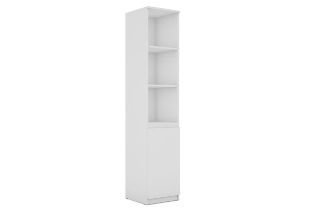 Úzky regál s dvierkami so šírkou 40 cm v bielej farbe ponúka praktické úložné priestory, účelnosť a čisté línie tvarov, ktoré sa hodia do každého interiéru. Odkladacie police sú ideálne na vystavenie kníh, dekorácií a ďalších predmetov. Za otočnými dvierkami sa skrýva praktický úložný priestor s policou, ktorý Vám pomôže udržať poriadok v domácnosti.