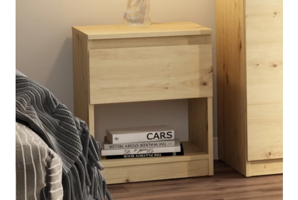 Skrinka/nočný stolík v dekore dub artisan ponúka praktické úložné priestory, účelnosť a čisté línie tvarov, ktoré sa hodia do každého interiéru.