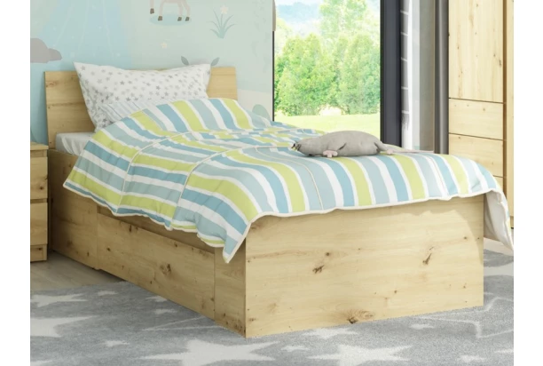 Posteľ o rozmere lôžka 90×200 cm v dekore dub artisan ponúka praktické úložné zásuvky, účelnosť a čisté línie tvarov, ktoré sa hodia do každého interiéru.
