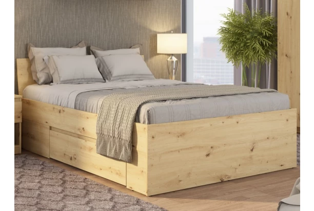 Posteľ o rozmere lôžka 140×200 cm v dekore dub artisan ponúka praktické úložné zásuvky, účelnosť a čisté línie tvarov, ktoré sa hodia do každého interiéru.