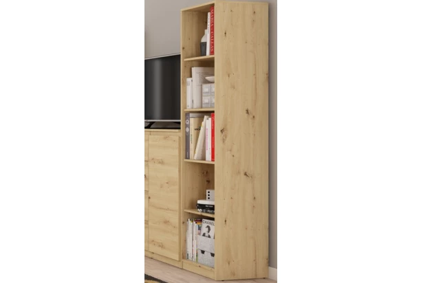 Vysoký regál o šírke 40 cm v dekore dub artisan ponúka praktické úložné priestory, účelnosť a čisté línie tvarov, ktoré sa hodia do každého interiéru. Police možno výškovo nastavovať.