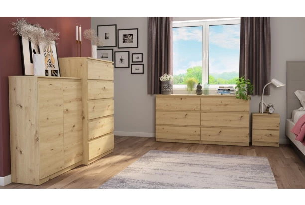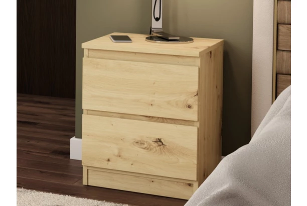 Skrinka/nočný stolík s 2 zásuvkami v dekore dub artisan ponúka praktické úložné priestory, účelnosť a čisté línie tvarov, ktoré sa hodia do každého interiéru.