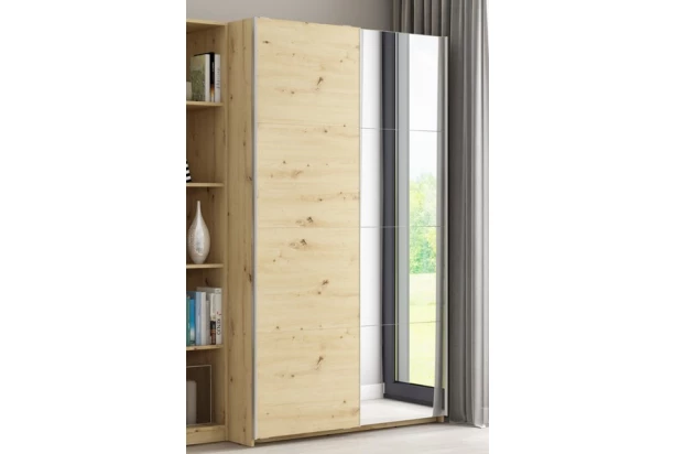 Šatníková skriňa so šírkou 150 cm s 2 posuvnými dverami v dekore dub artisan, ponúka praktické úložné priestory, účelnosť a čisté línie tvarov, ktoré sa hodia do každého interiéru.