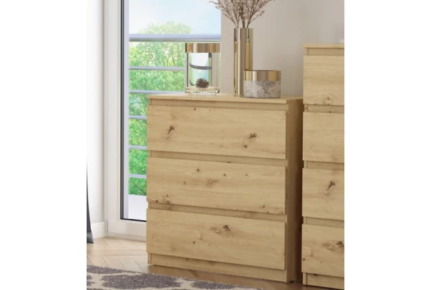 Zásuvková komoda s výškou 80 cm v dekore dub artisan, obsahuje 3 zásuvky a ponúka praktické úložné priestory, účelnosť a čisté línie tvarov, ktoré sa hodia do každého interiéru.