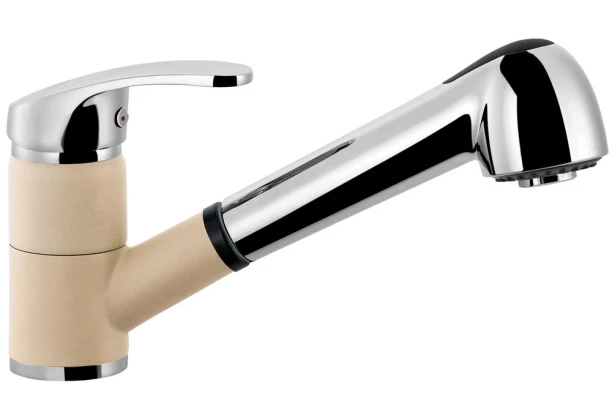 Páková drezová batéria Sinks Legenda s prepínacou vyťahovacou sprchou pre praktické umývanie. Vyrobená v prevedení Sahara/chróm. Ideálna kombinácia spolu s granitovým drezom.