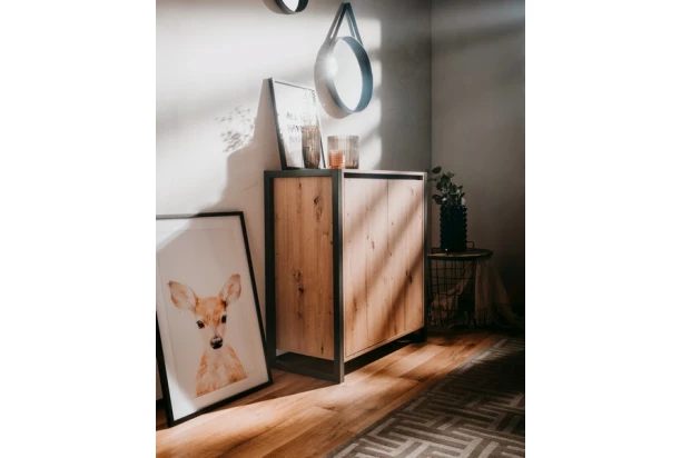 Úložná skrinka z kolekcie Denver – nábytok v mestskom industriálnom štýle pôsobí veľmi moderne a dáva Vám možnosť vytvárať dizajnové interiery v mladistvom duchu. Príjemné útulné tóny drevodekoru dub artisan dopĺňajú antracitovo šedé línie a široké bočné rámy, vďaka ktorým je nábytok nezameniteľný.