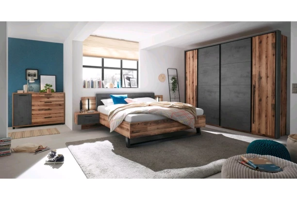 Užite si nevšednú atmosféru domova s nábytkom, ktorý zaujme už na pohľad – komoda so zásuvkami z kolekcie Sarnia o šírke 125 cm v imitácii tmavého šedého betónu a alpských zrubových dosiek je inšpirovaná atraktívnym industriálnym dizajnom. Spojenie tradičnéj optiky dreva s netradičným betónom pôsobí moderne a pritom veľmi útulne.