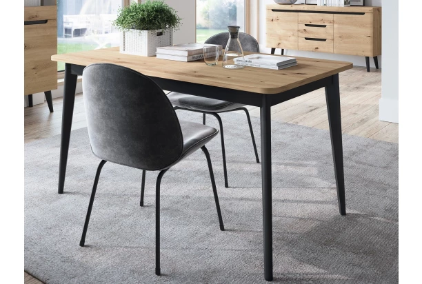 Rozkladací jedálenský stôl z kolekcie Nord – inšpirujte sa útulným severským štýlom. Moderný nábytok so zaoblenými hranami ,dopĺňajú masívne drevené nohy, ktoré dodávajú interiéru ľahkosť a svieži vzhľad. Teplé tóny drevodekoru podkresľujú tmavé línie, vďaka ktorým nábytok skvelo vynikne.