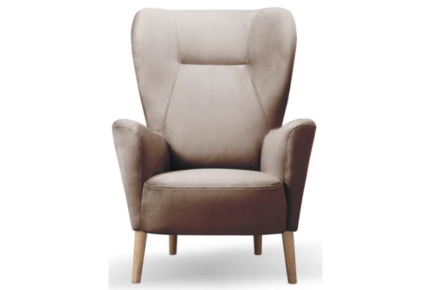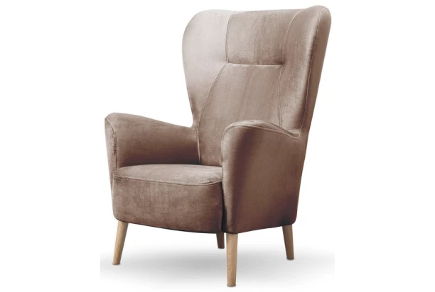 Doplňte si noblesnú atmosféru bytu s týmto elegantným kreslom, ktoré skvele vynikne nielen v priestore obývačky. Zaoblené tvary, komfortné vypolstrovanie a vysoké operadlo sa postarajú o Vaše pohodlie. Kreslo na drevených nôžkach je očalúneé zamatovo lesklú mäkkou látkou vo svetlo hnedom odtieni.