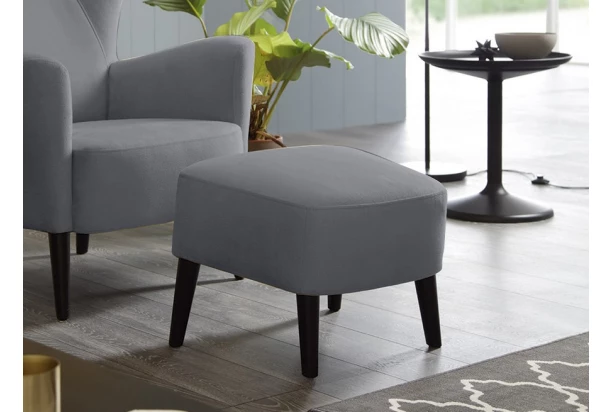Doplňte si noblesnú atmosféru bytu s týmto elegantným taburetom, ktorý skvele vynikne nielen v priestore obývačky. Taburet na drevených nôžkach je očalúnený zamatovo mäkkou látkou v šedom odtieni.