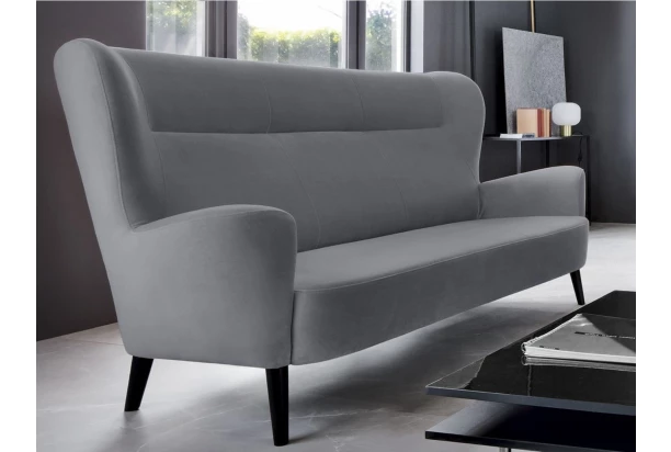 Doplňte si noblesnú atmosféru bytu s touto elegantnou trojmiestnou pohovkou, ktorá skvele vynikne nielen v priestore obývačky. Zaoblené tvary, komfortné vypolstrovanie a vysoké operadlo sa postarajú o Vaše pohodlie. Trojmiestna pohovka na drevených nôžkach je očalúnená zamatovo mäkkou látkou v šedom odtieni.