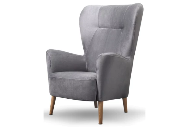 Doplňte si noblesnú atmosféru bytu s týmto elegantným kreslom, ktoré skvele vynikne nielen v priestore obývačky. Zaoblené tvary, komfortné vypolstrovanie a vysoké operadlo sa postarajú o Vaše pohodlie. Kreslo na drevených nôžkach v odtieni prírodný dub je očalúnené zamatovo lesklú mäkkou látkou v šedom odtieni.