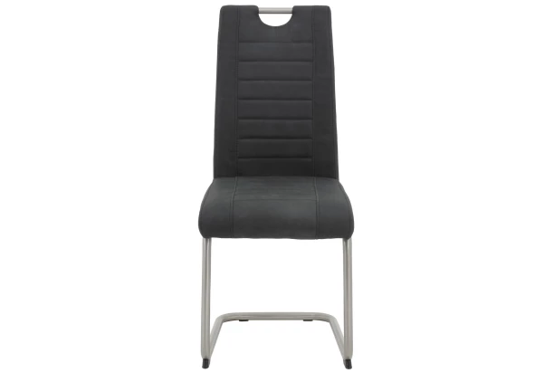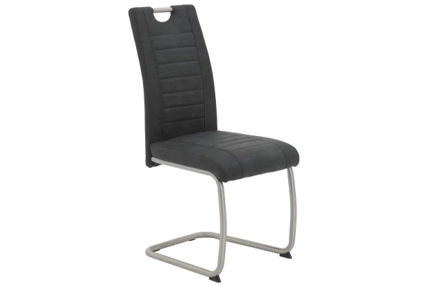 Pohodlne tvarovaná jedálenská stolička na kovovej podnoži je vybavená praktickým madlom pre ľahšiu manipuláciu. Látkový poťah v antracitovej vintage optike, dopĺňa zaujímavé prešívanie. Stolička sa tiež vyznačuje zvýšenou nosnosťou.