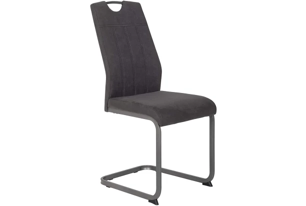Jedálenská stolička na kovovej podnoži, má pohodlný sedák, očalúnenie antracitovou látkou v štýlovej vintage optike. Ideálna do modernej jedálne.