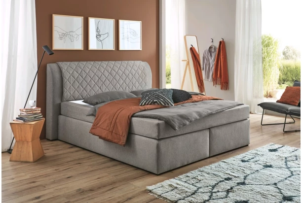Boxspringová manželská posteľ s rozmerom lôžka 180×200 cm zaujme zaobleným čelom s atraktívnym kosoštvorcovým prešívaním. Očalúnená tkaninou v šedom melírovanom odtieni. Dve vrstvy na seba uložených matracov, sa postarajú o komfortne mäkkučké spanie a uvoľnenie. Ideálna pre všetkých, ktorí majú radi pohodlie mäkkého lôžka.