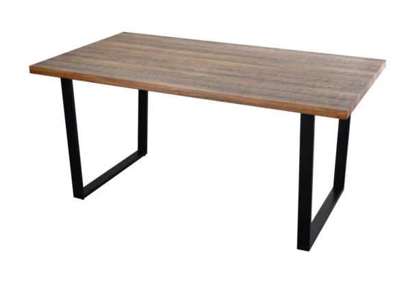 Obdĺžnikový jedálenský stôl o rozmere 160×90 cm je ladený do industriálneho štýlu. Čierna kovová podnož a mohutná jedálenská doska v dubovom dekore pôsobí masívne.