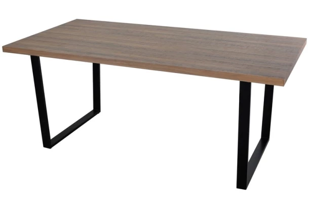 Obdĺžnikový jedálenský stôl o rozmere 180×90 cm je ladený do industriálneho štýlu. Čierna kovová podnož a mohutná jedálenská doska v dubovom dekore pôsobí masívne.
