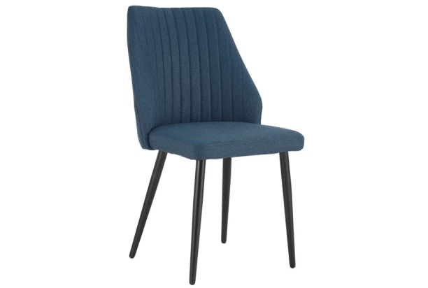 Elegantná jedálenská stolička na kovových nohách má pohodlne zaoblený dizajn operadla. Očalúnenie látkou v tmavo modrom odtieni a zvýraznená atraktívnym zvislým prešitím.