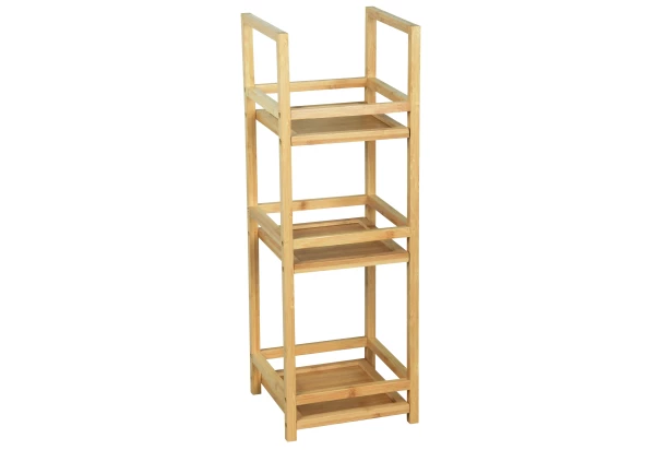 Regál s 3 priehradkami je vyrobený z bambusového dreva a vo vnútri bytu pôsobí útulne. Svoje univerzálne využitie nájde kdekoľvek v byte – či už v obývačke, kuchyni, detskej izbe, špajzi alebo kúpeľni.
