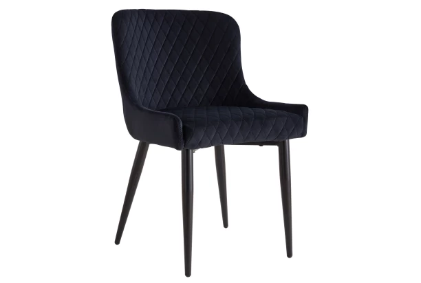 Elegantný zaoblený dizajn jedálenskej stoličky podčiarkuje okrasný prešiv zamatovej látky v čiernej farbe- stoličky tak vnesie do každej jedálne noblesnú atmosféru a pohodlie zároveň.