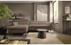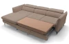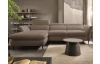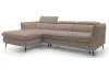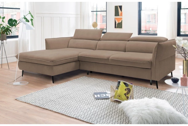 Rohová sedacia súprava v trendovom elegantnom dizajne pripomína optiku vankúšov. Komfortné sedenie dopĺňajú polohovateľné chrbtové opierky a nastaviteľné bočné podrúčky, vďaka ktorým si prispôsobíte pohodlie podľa aktuálnej potreby. Sedačka tvoriaca ľavý roh je očalúnená zamatovo lesklú mäkkou látkou v odtieni svetlo hnedá. Praktickou stránkou je rozkladacia funkcia na lôžko a úložný priestor, ktorý sa vždy hodí.