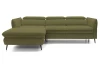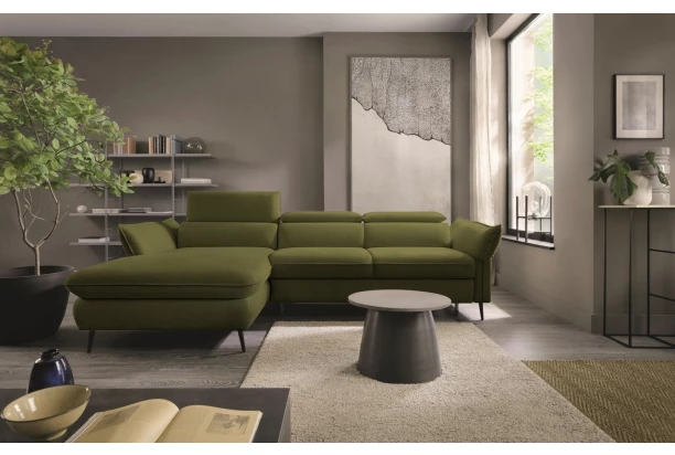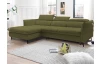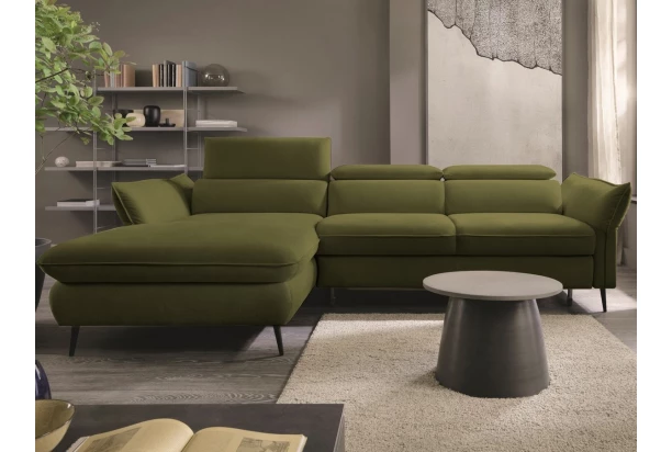 Rohová sedacia súprava v trendovom elegantnom dizajne pripomína optiku vankúšov. Komfortné sedenie dopĺňajú polohovateľné chrbtové opierky a nastaviteľné bočné podrúčky, vďaka ktorým si prispôsobíte pohodlie podľa aktuálnej potreby. Sedačka tvoriaca ľavý roh je očalúnená zamatovo lesklú mäkkou látkou v odtieni machová zelená. Praktickou stránkou je rozkladacia funkcia na lôžko a úložný priestor, ktorý sa vždy hodí.