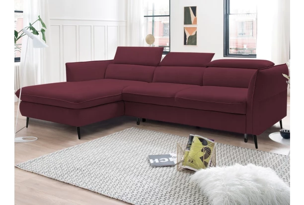 Rohová sedacia súprava v trendovom elegantnom dizajne pripomína optiku vankúšov. Komfortné sedenie dopĺňajú polohovateľné chrbtové opierky a nastaviteľné bočné podrúčky, vďaka ktorým si prispôsobíte pohodlie podľa aktuálnej potreby. Sedačka tvoriaca ľavý roh je očalúnená zamatovo mäkkou látkou v odtieni vínová. Praktickou stránkou je rozkladacia funkcia na lôžko a úložný priestor, ktorý sa vždy hodí.